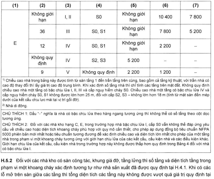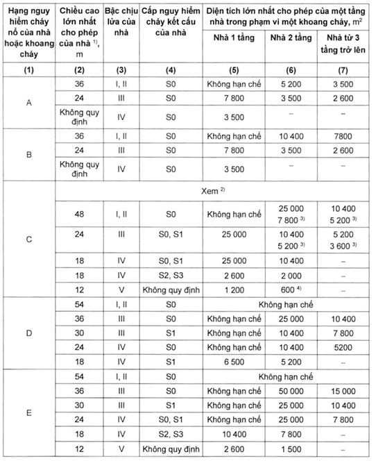 Bảng 6 – Phân nhóm nhà 1) dựa trên tính nguy hiểm cháy theo công năng